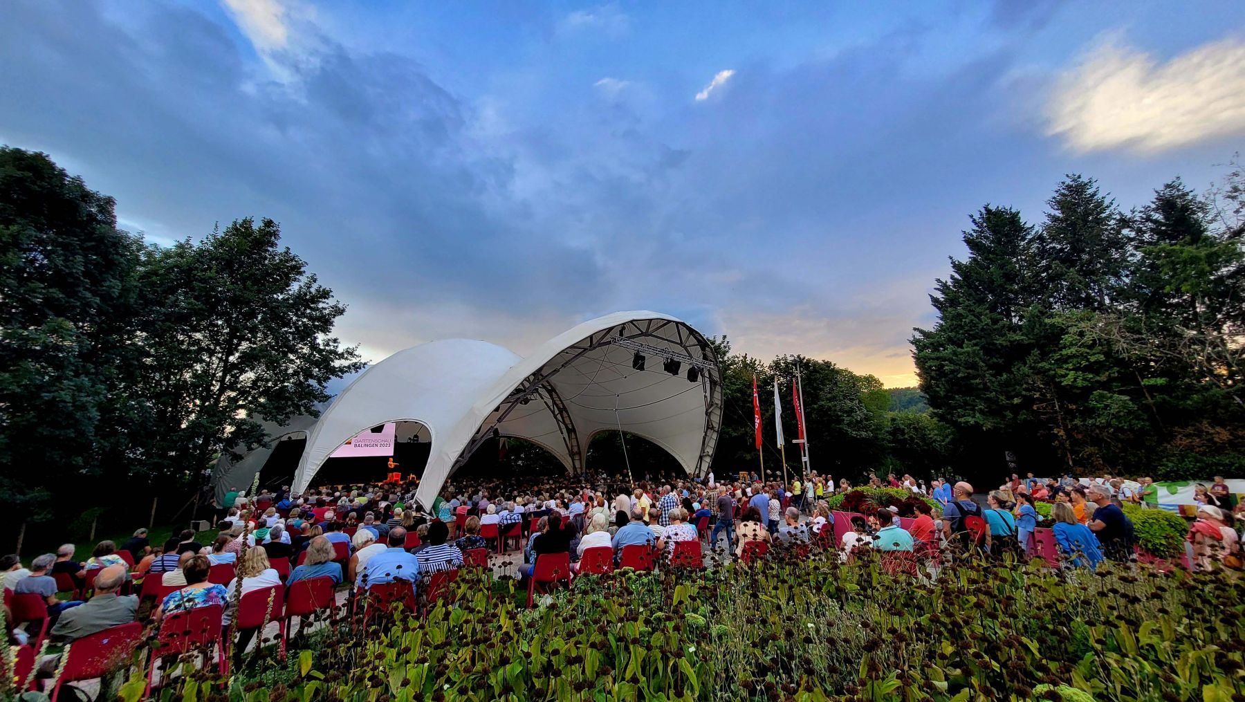 Als Jakob Schlaucher vom Organisationsteam der Sportfreunde Bussen alle Gäste auf der „schönsten Sportanlage Süddeutschlands" zu einem „erotischen Vergnügen" begrüßte, konnte noch niemand ahnen, wie sich der Abend an der frischen Luft gestalten würde. Angekündigt war ein Kabarettabend mit dem Titel „Schwäbische Erotik". Geboten wurde eine ebenso brillante wie abwechslungsreiche Show mit Spaß und Tiefgang. Dabei ging es nicht nur um Erotik und die kleinen Unterschiede zwischen Mann und Frau. Auch die Schwaben und die Auswirkungen der Coronapandemie wurden anständig auf die Schippe genommen.
