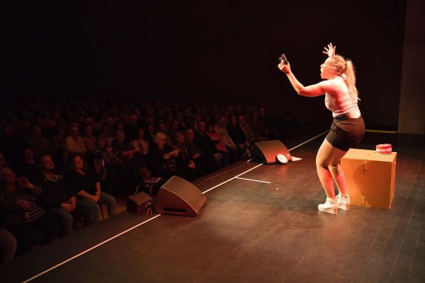 Balingen - "Schwäbische Erotik" mit Christiane "Maserati" Maschajechi war am Sonntagabend auf der Drive-In-Kulturbühne in Balingen angesagt. Die Besucher in ihren Autos auf dem Parkplatz vor der Eishalle genossen das kabarettistische Programm.